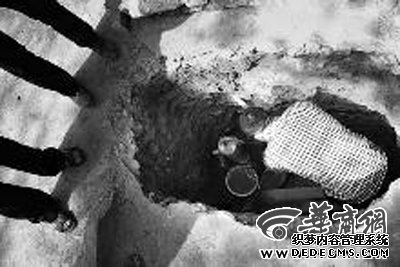 在高營村一組的路邊,幾名工人正在一口井內施工,有2名婦女便借用井內施工排水管流出的水洗衣服。湊近井口往里看,井深十余米,只有井底有少量水,剛剛淹過水泵。一名婦女說:“家里壓水井干了好長時間了,攢了好多臟衣服沒水洗。”