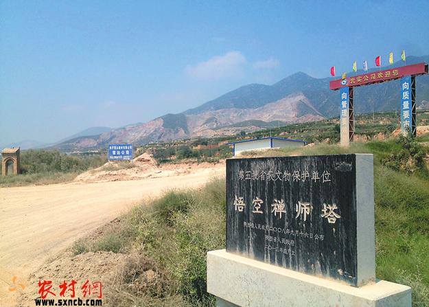 在巖實公司和慧達公司采石場大門外,記者還意外地發現立著一塊省級文物保護碑“悟空禪師塔”,碑文部分內容已被粉塵遮掩。相傳這座塔是為紀念孫悟空的原型悟空禪師而建。因周邊放炮采石,塔身出現裂縫且傾斜嚴重,僅靠一個鐵架支撐。附近還有唐貞陵、唐崇陵等,而不遠處采石場里卻時不時地傳來陣陣開山炸石的炮聲,騰空而起黃色粉塵籠罩了半個山頭。