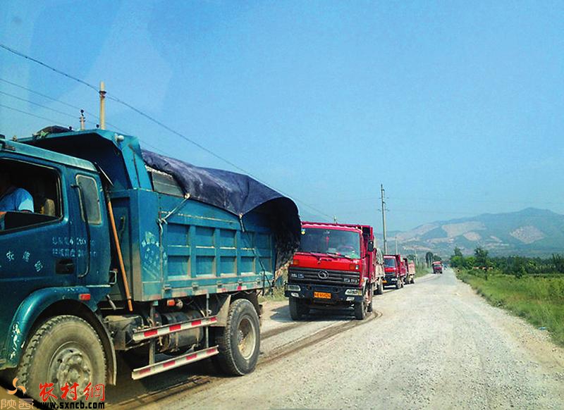通往北部礦山的路上,拉石料車輛一輛接著一輛。