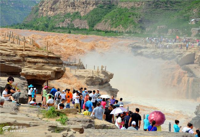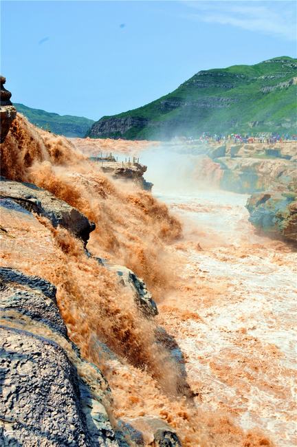 當你聽說黃河時,只是影片中、教科書中的字眼。當車子駛近黃河時,那隆隆的濤聲如嘶如吼。當你置身黃河之濱,壺口瀑布之旁時,山河之雄壯、人之渺小、自然之神功,讓你無法相信,那都是真的!黃黃的水、黃黃的浪,騰起的黃中泛白的霧,還夾雜著腥腥的黃土味,盛夏的陽光下,一道道彩虹五彩斑斕,如夢如幻。這就是條母親河——黃河,養育著中華民族,蘊育著中華文明。可能你在當時來不及想、來不及說,只能拿起相機,讓這種印象定格,讓這種感覺永恒!