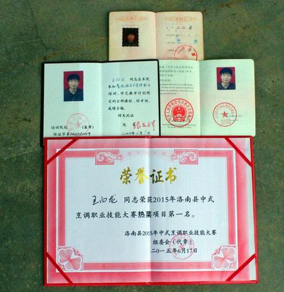 王向龍同志曾參加了陜西涉外飯店大比武,榮獲熱菜第一名,涼菜花拼第二名,一九九八年被共青團西安市委授予“西安市青年崗位能手”榮譽稱號,國家勞動和社會保障部給其頒發了國家“特一級烹調師”證書,他的事跡被中國經濟出版社錄入“中華人物大典”。尤其是他制作的“王氏豬蹄”、“紅燒鯉魚”贏得了業內專家、學者的好評和眾多食客的贊譽。