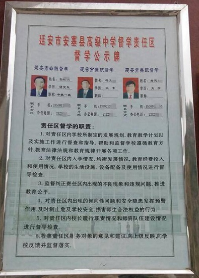就學生及部分家長反映安塞縣高級中學巧立名目亂收費問題,記者在沒有得到校方調(diào)查回復(fù)的情況下,于9月9日來到該縣教育局反映并采訪。據(jù)一位分管副局長說:我們要求各個學校規(guī)范辦學,對于部分學校向?qū)W生強推教輔資料、特別是亂收費問題,我們是零容忍態(tài)度;你們反映的高級中學相關(guān)問題,以前也有學生家長反映過,縣紀檢部門也反復(fù)進校查過幾次……我們對記者監(jiān)督的問題會重點安排相關(guān)人員進行查處,調(diào)查結(jié)果出來后,我會第一時間把信息反饋給媒體。