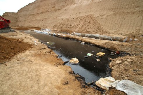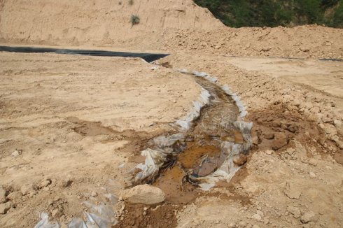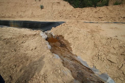 有村民反映延長油田股份有限公司杏子川采油廠采油四大隊轄區內一已經投產的144井場泥漿池防滲布破爛不堪,好多地方已經沒有防滲布了,污染比較嚴重。并且現在正在用鏟車直接掩埋。