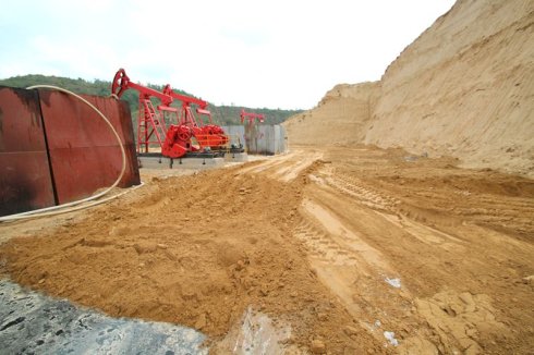 經筆者詢問后得知,井場工作人員說正在作業的鏟車是進行泥漿固化的鏟車,此時筆者有好多的疑問!