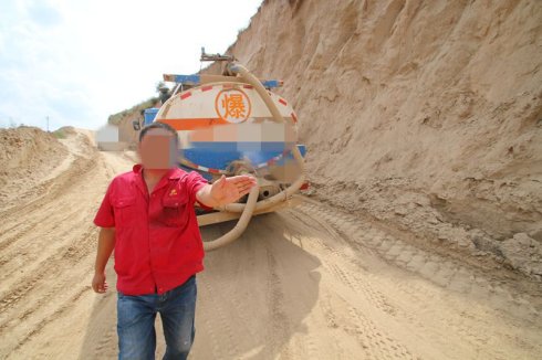 以下圖為泵油車在氣井井場排放污油污水