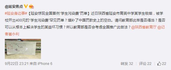 網(wǎng)曝延安驚現(xiàn)全國(guó)首例“學(xué)生污染費(fèi)”罰單