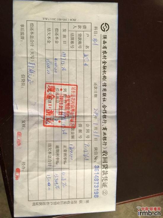 9月22日下午4點,記者在張家灘信用社見到該行主任梁光斌,他說中午給縣上領導行門戶,來遲了。對記者提出的問題,梁光斌取出一張日期為2015年1月31日的收回貸款憑證,上面顯示王思發1997年12月28日在聯社有一筆17000元的貸款,期限是一年,償還本金4000元。梁主任說,為了盡快完成信用社考核任務,元月30日他電話給王思發溝通好,達成共識,信用社扣3000元,后因柜臺工作人員王剛感冒誤操作成4000元,梁光斌本人表示愿意借錢給王思發一千元。此后,王思發也一直沒來信用社借錢。