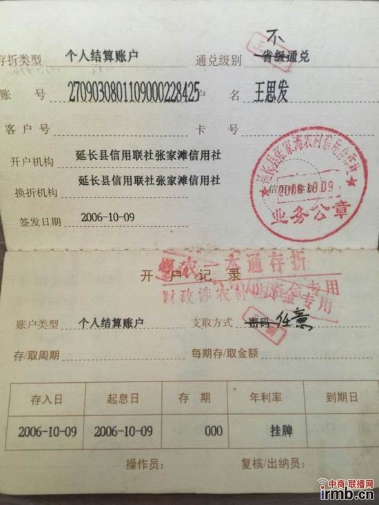 2015年8月底,王思發老漢被鎮上領導告之,村民打罕井給補助2000元錢,讓他提供信合帳號。老人急忙在家翻找到存折,到張家灘信用社查詢,發現存在里面的4000元政府救災補助不見了。王思發一下慌了神,咨詢信用社的工作人員,說讓他好好想想,是不是取走了?后經王思發反復問詢,信用社工作人員說錢被他們主任梁光斌取走了!