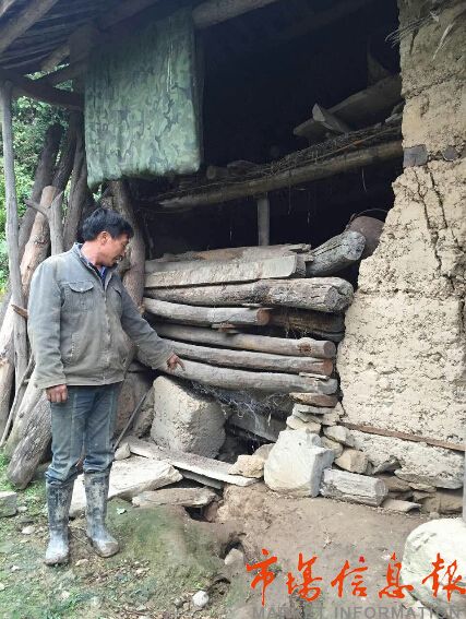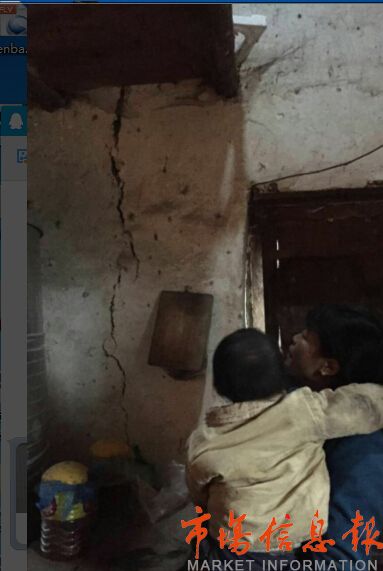 村民郝明葵的家里,房梁已經垮掉,下面全用木頭支撐著。“沒挖煤之前,只是有一些輕微裂縫,挖煤后,就開始變得嚴重,現在最害怕的是垮塌,特別是每逢下雨墻壁就倒”郝明葵擔心的說。