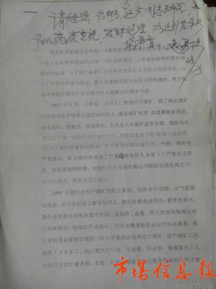 迫于危困的擔憂,2009年村民開始上訪,但問題仍未得到解決。無奈,2012年4月村民再次找到鎮巴縣委信訪辦,終于迎來了希望。同年8月28日,縣委書記趙勇健批示“予以高度重視,及時處理防止引發新的矛盾”。