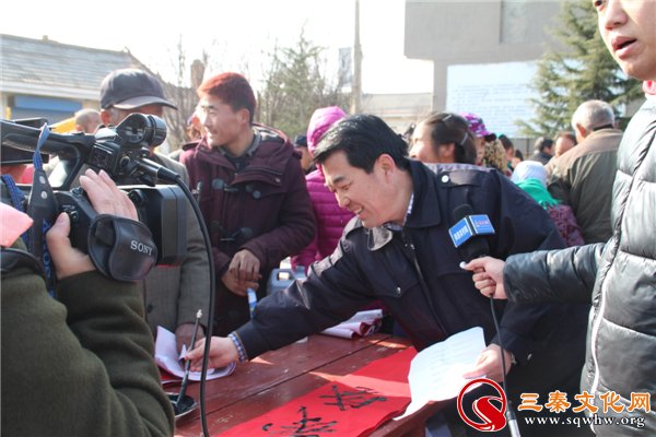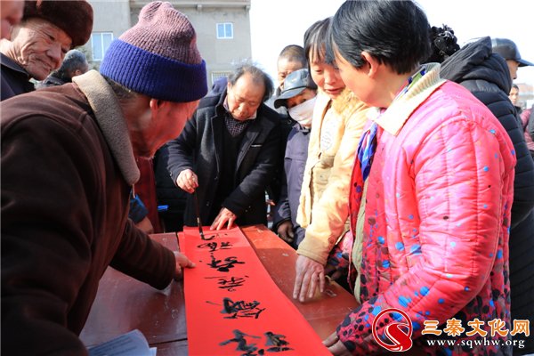 “春節(jié)貼春聯(lián)是古代沿襲下來的傳統(tǒng)習(xí)俗,每逢春節(jié)期間,無論城市還是農(nóng)村,家家戶戶都要精選一副大紅春聯(lián)貼于門上,辭舊迎新,以增加節(jié)日的喜慶氣氛。本次活動(dòng)邀請了幾位藝術(shù)家為我們撰寫春聯(lián),這比印刷的對聯(lián),更具有意義和價(jià)值,希望今天群眾能夠拿到自己喜歡的春聯(lián)也為我們即將來臨的春節(jié)增添了節(jié)日的氣氛。”合陽縣王村鎮(zhèn)運(yùn)莊村黨支部書記楊培森在采訪時(shí)說道。