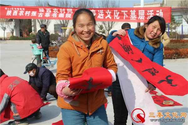 本次活動(dòng)邀請知名藝術(shù)家,現(xiàn)場為群眾寫春聯(lián)、寫福字,通過別開生面的藝術(shù)表現(xiàn)形式,提升群眾人文素養(yǎng),傳播優(yōu)秀民族文化,濃厚群眾春節(jié)文化氛圍。“迎新春送文化下基層活動(dòng)”以送書畫送春聯(lián)文化下鄉(xiāng)為起點(diǎn),逐步豐富文化服務(wù)的內(nèi)容,擴(kuò)大服務(wù)范圍,以促進(jìn)城鄉(xiāng)文化的繁榮和發(fā)展,大力營造喜慶熱烈、歡樂祥和節(jié)日文化氛圍,更好地豐富廣大群眾精神文化生活。陜西農(nóng)村報(bào)、陜西農(nóng)村網(wǎng)以公益文化宣傳為主導(dǎo),開展文化走向基層活動(dòng),把送文化下鄉(xiāng)活動(dòng)與“文化惠民服務(wù)群眾” 、“助力精準(zhǔn)扶貧 共建小康社會(huì)”實(shí)事緊密結(jié)合起來,用書畫藝術(shù)豐富群眾的文化生活。