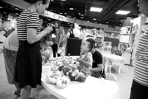 今年9歲的楊沁童這次是和爸爸媽媽一起來到這里逛創意文化市集的,“我以前也來過,特別喜歡這里,看書的時候不累,可以坐在椅子上。”楊沁童非常欣喜地稱這次跟以前不一樣了,她在市集上買到了女孩們都喜歡的指甲貼。父親楊洋對這里的閱讀環境非常滿意,“孩子都愛玩,如果就是往那里一坐只看書,很枯燥。但是在這里不僅能看書,還能體驗一些其他的東西,很適合孩子們。”