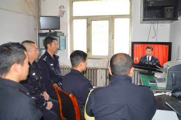 觀看完后,所長劉殿華組織全體干警召開座談會,要求大家在今后的工作中要以總書記的講話為動(dòng)力,牢固樹立“四個(gè)意識”,深刻認(rèn)識、準(zhǔn)確把握報(bào)告的基本內(nèi)容和主要觀點(diǎn),確保十九大期間各項(xiàng)公安保衛(wèi)工作落到實(shí)處。