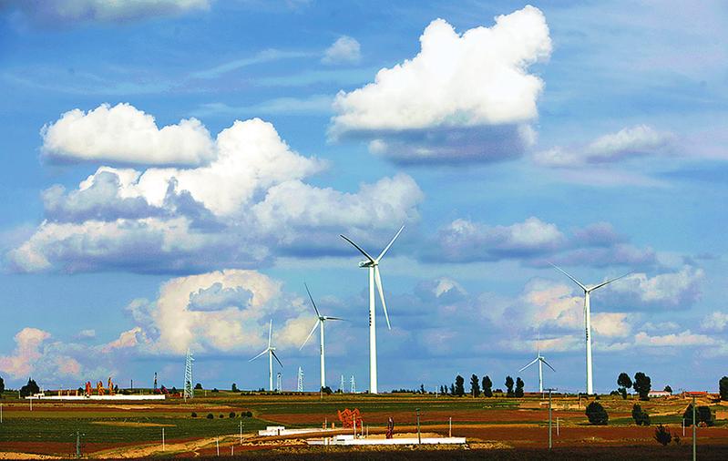 定邊縣風(fēng)能資源、太陽能資源得天獨厚,是我省最適宜發(fā)展新能源產(chǎn)業(yè)的地方。目前,定邊縣已相繼完成了定邊330千伏變電站和專門匯集風(fēng)電、光伏發(fā)電的郝灘、油房莊、王盤山、公布井4座330千伏匯集站等一批重點電網(wǎng)工程。截至10月底,定邊縣新能源裝機(jī)規(guī)模達(dá)到225萬千瓦,占榆林市新能源總裝機(jī)容量的34.6%,率先建成了市域內(nèi)首個裝機(jī)突破200萬千瓦的新能源發(fā)電裝置。圖為定邊縣磚井鎮(zhèn)國電陜西定邊繁食溝風(fēng)電場。