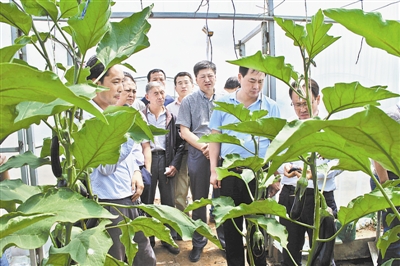 “四支隊伍”成員查看大棚蔬菜長勢。