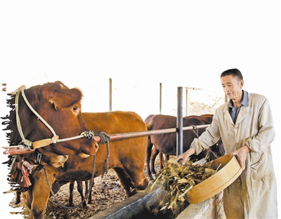 貧困戶依托扶貧政策發(fā)展黃牛養(yǎng)殖(資料照片)。