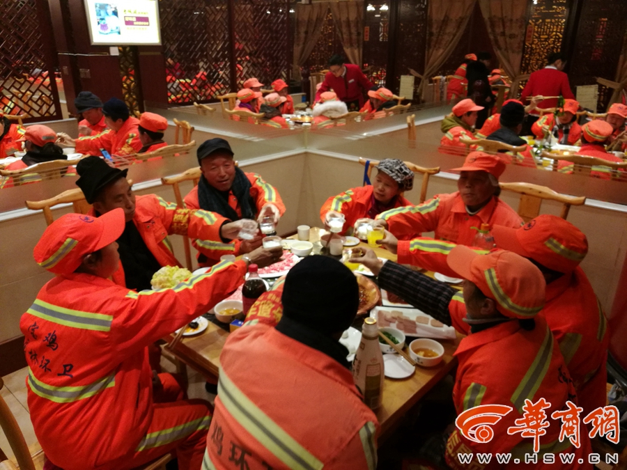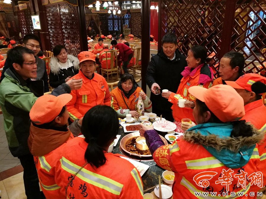 為答謝環(huán)衛(wèi)工寒冬除雪 寶雞一區(qū)政府請(qǐng)環(huán)衛(wèi)工人吃火鍋