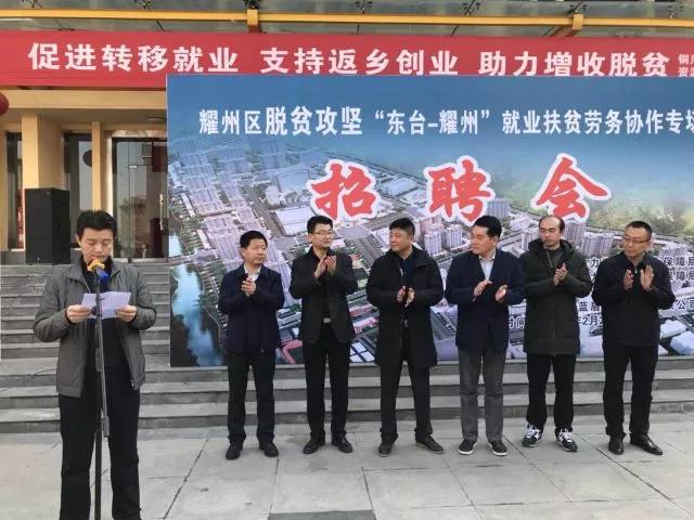 2月28日,耀州區脫貧攻堅“東臺-耀州”就業扶貧勞務協作專場招聘會在耀州區宣傳文化中心成功舉辦。銅川市就業管理局負責人辛志國,耀州區人大常委會主任楊滿收,區委常委、常務副區長吳陽,區政府副區長趙曉峰,江蘇省東臺市人力資源服務中心副主任袁毅進,工會主席郭榮躍出席儀式。