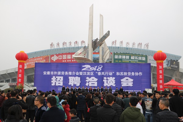 上午10時(shí),安康金州廣場早已聚滿了前來參加求職招聘的群眾。安康市外派勞務(wù)推介暨漢濱區(qū)“春風(fēng)行動(dòng)”和蘇陜勞務(wù)協(xié)作招聘會(huì)洽談會(huì)啟動(dòng)儀式在安康市金洲廣場舉行。來自江蘇省常州市內(nèi)的68家企業(yè),涵蓋精細(xì)化工、醫(yī)藥健康、紡織服裝、裝備制造、新材料等行業(yè)和市內(nèi)450多家商貿(mào)、服務(wù)型企業(yè)參加了招聘洽談,活動(dòng)現(xiàn)場,提供了210個(gè)工種、34700多個(gè)就業(yè)崗位。據(jù)不完全統(tǒng)計(jì),活動(dòng)當(dāng)天先后有20000余人進(jìn)場咨詢洽談,7150多人進(jìn)行了求職登記,3460余人達(dá)成了就業(yè)意向。