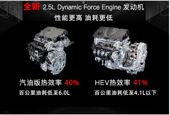 第八代凱美瑞的全新2.5L Dynamic Force Engine發(fā)動(dòng)機(jī)歷經(jīng)5年研發(fā),不僅更緊湊,而且使用了許多前沿科技,功率和燃油經(jīng)濟(jì)性均大幅提升,其熱效率達(dá)到40%,油耗僅為6.0L;混合動(dòng)力版本發(fā)動(dòng)機(jī)熱效率更提升至41%,油耗低至4.1L。全新設(shè)計(jì)的機(jī)體、缸蓋、進(jìn)排氣系統(tǒng)、散熱器、空氣濾芯等皆具備小型化和高性能化特點(diǎn)。