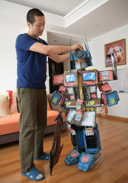 別人家爸爸!西安80后老爸為兒子純手工打造"變形金剛" 盔甲